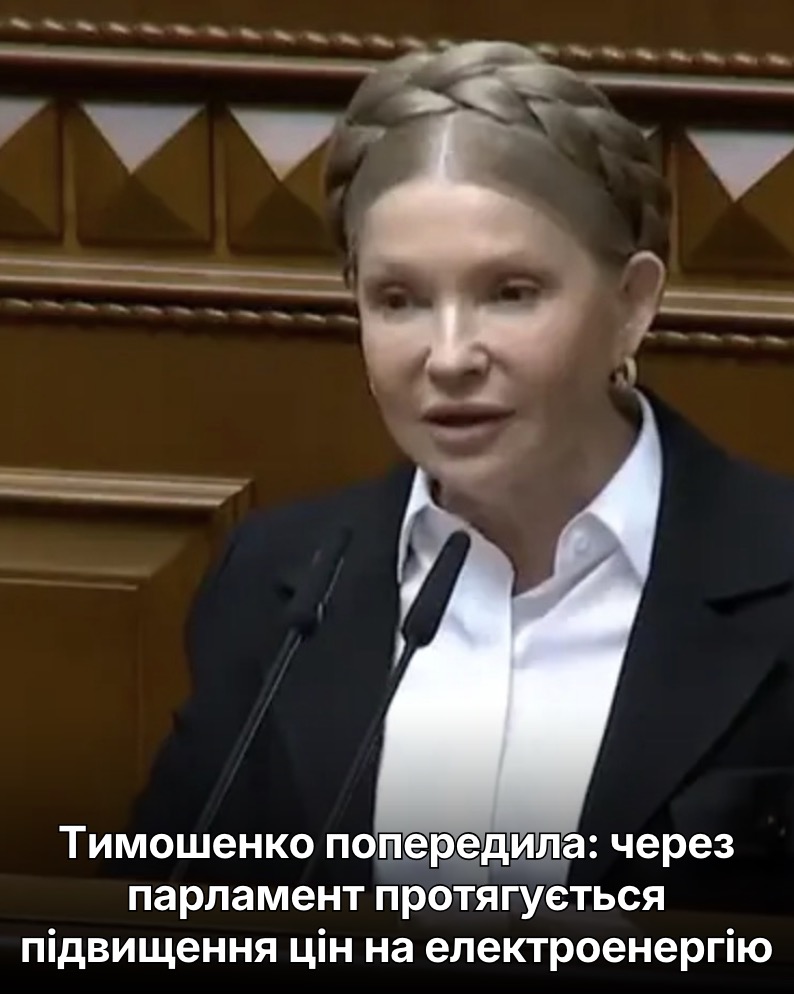 «Ці 37 мільярдів покладуть не тільки на людей, а ще й на середній бізнес, який отримує електроенергію сьогодні за найвищими у світі цінами під час війни!» – заявила Юлія Тимошенко.